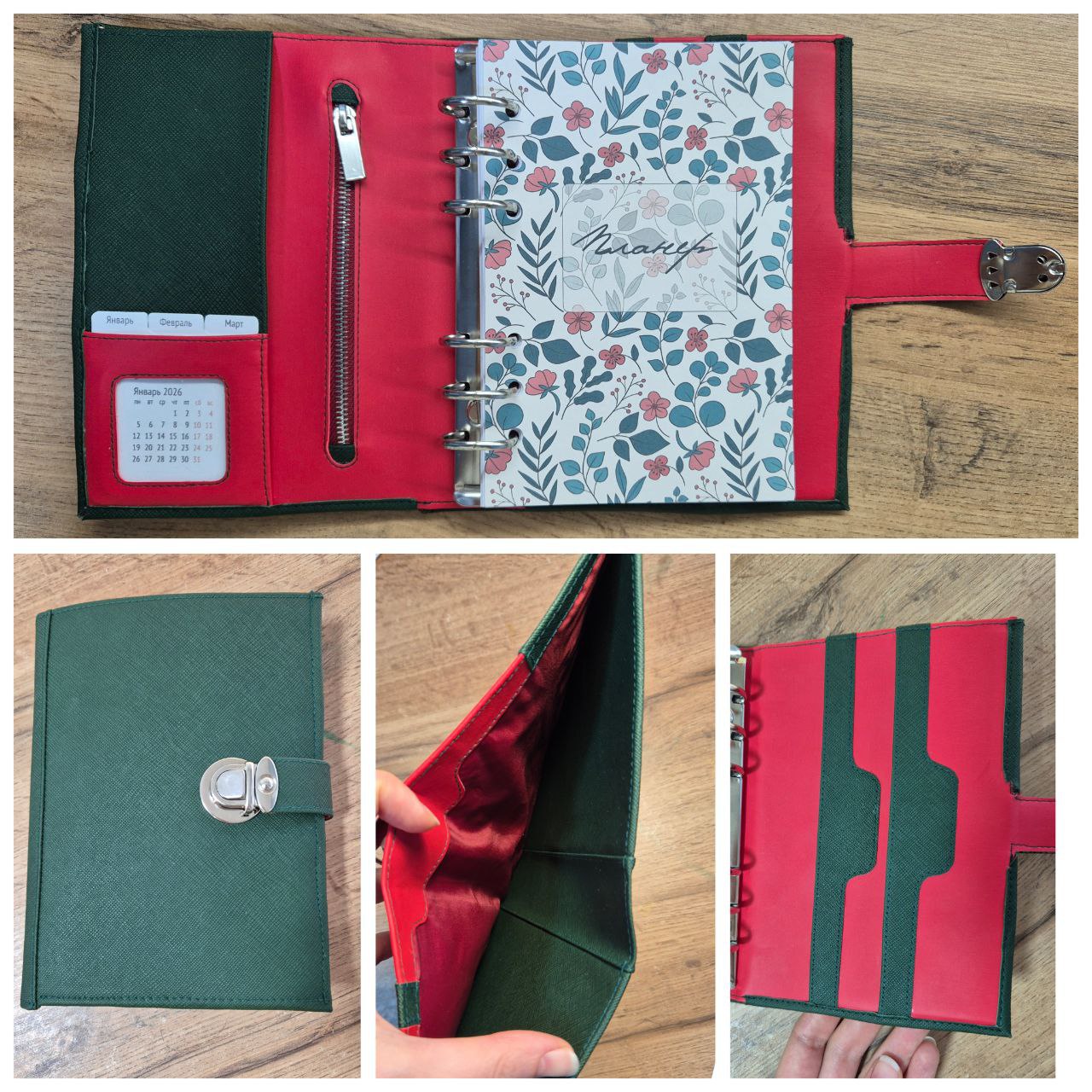 Мягкая обложка с большим карманом между слоями и множеством кармашков для мелочей плюс сменный блокнот в переплете или на кольцах к ней