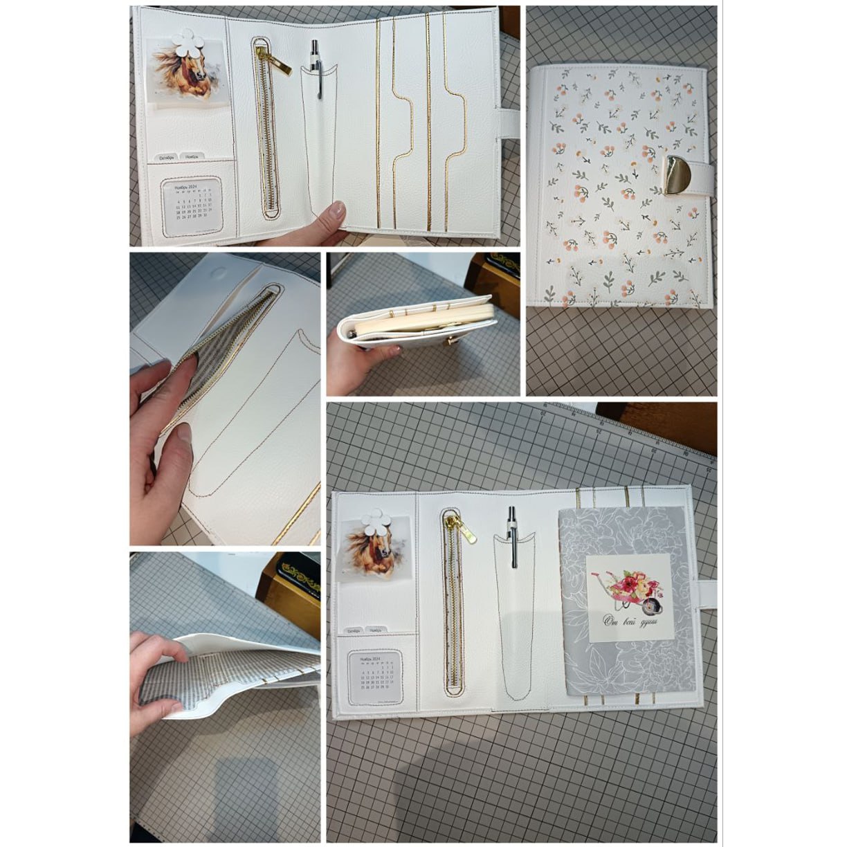 Мягкая обложка с большим карманом между слоями и множеством кармашков для мелочей плюс сменный блокнот в переплете или на кольцах к ней