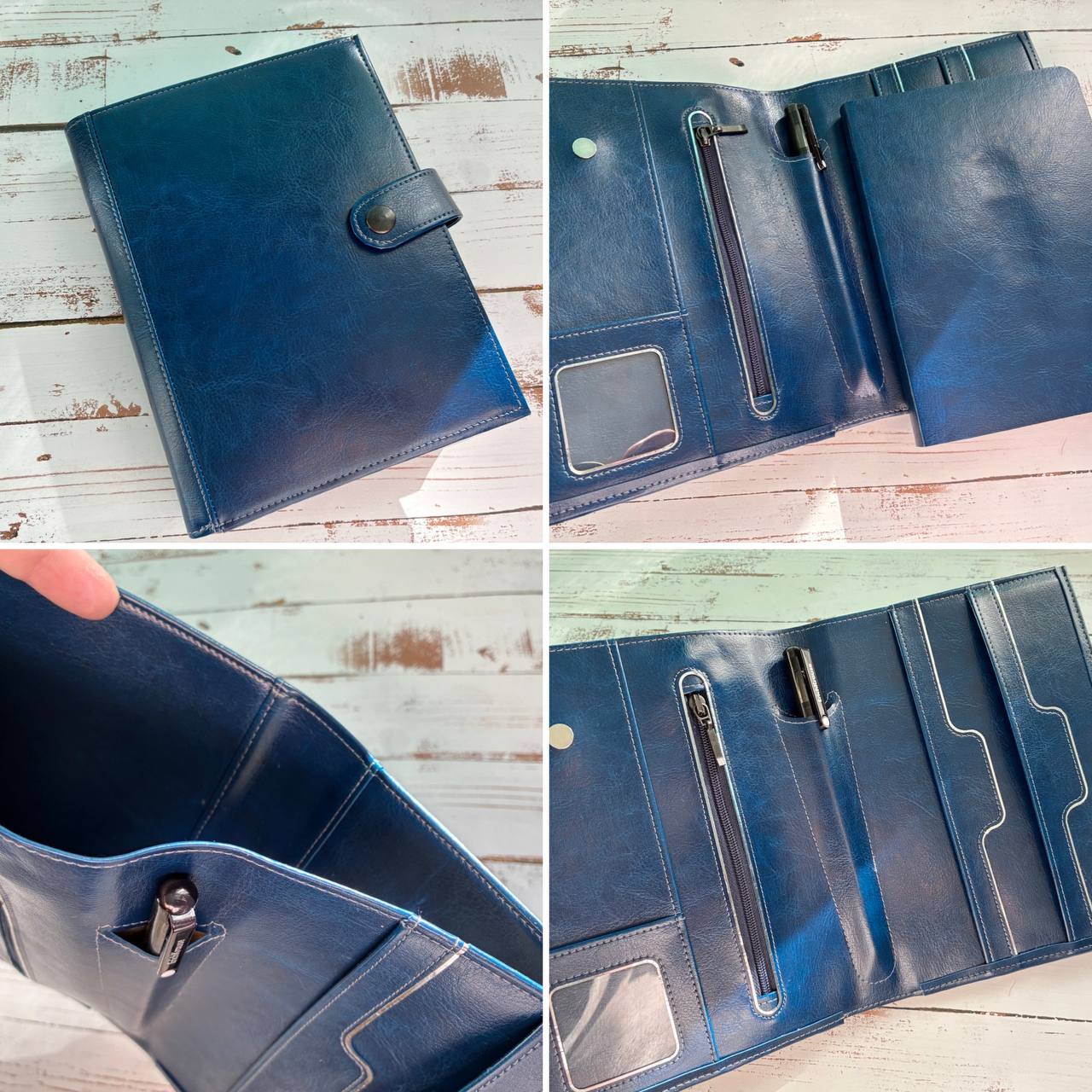 Мягкая обложка с большим карманом между слоями и множеством кармашков для мелочей плюс сменный блокнот в переплете или на кольцах к ней