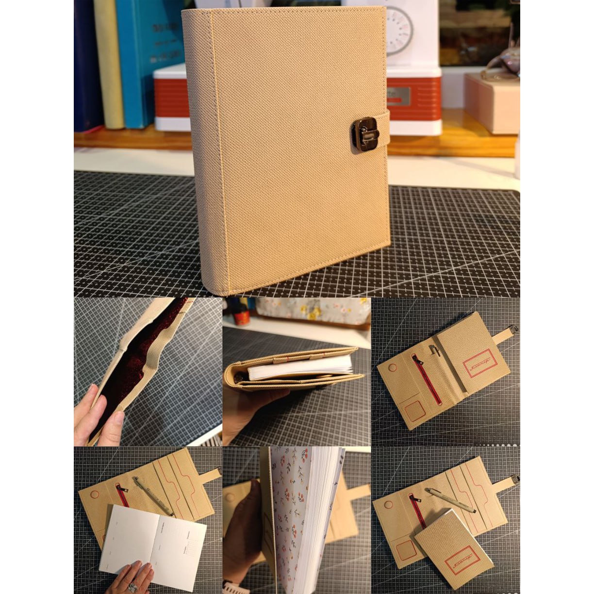 Ну вот он и готов! Впервые делала блокнот в переплёте, кайфанула от процесса🤩. Кожзама на блокнот не хватало, заменять другим не очень хотелось поэтому собрала из кусочков. Блок подрезала вручную, получилось как получилось🙈