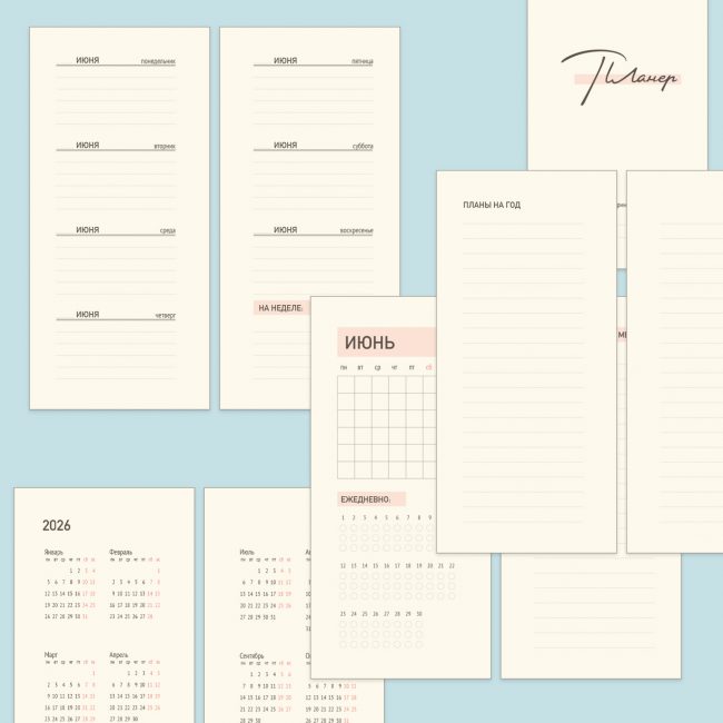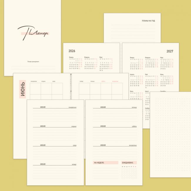 Странички без дат 2026–2027 для планера в переплете A5
