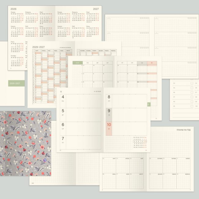 Странички 90х125 под переплет с датами от весны до весны 2026–2027 и без дат