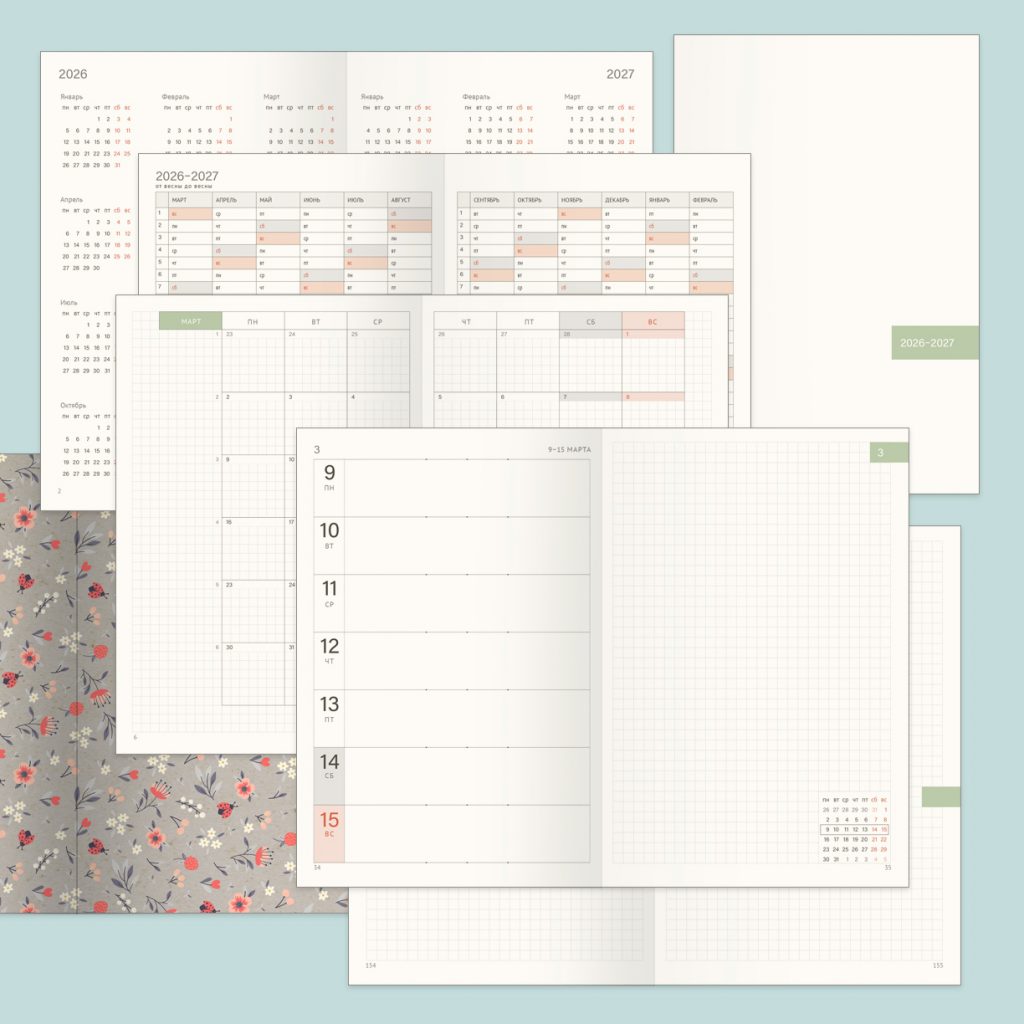 Эти странички датами от весны 2026 года до весны 2027 года и без дат с календарями на 2026 и 2027 год. Вы получаете файлы для печати страниц на этот период и файл для печати форзаца.