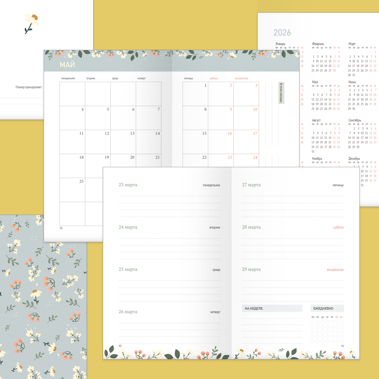 Эти странички датами на 2026 год. Вы получаете файл для печати страниц на этот период и файл для печати форзаца.