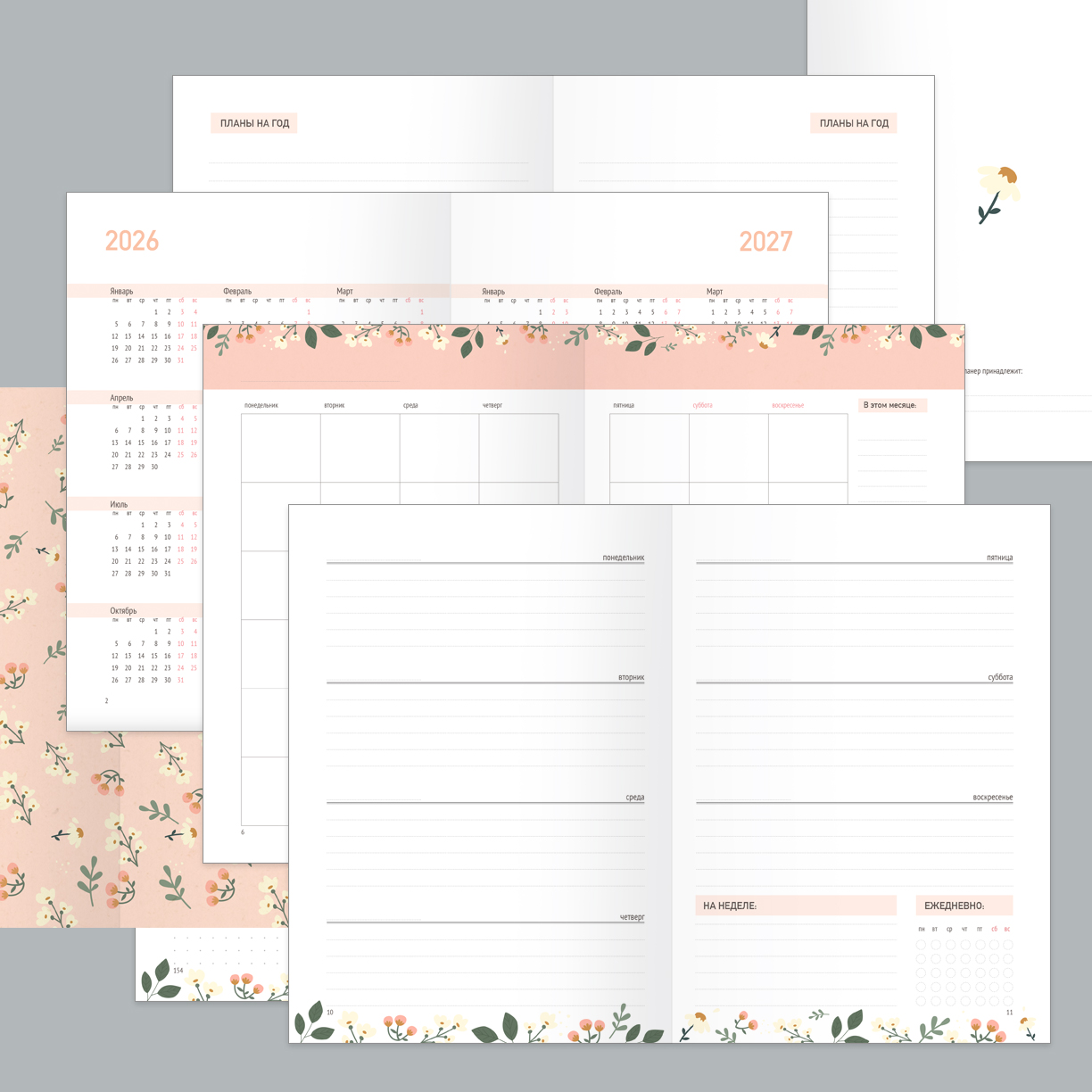 • странички под переплет без дат с календарями на 2026 и 2027 год