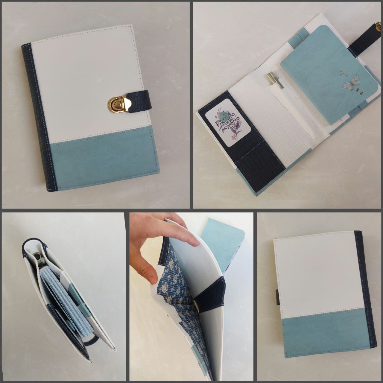 Моя готовая работа! Собрана только из остатков от прошлых проектов. Наверное поэтому страха испортить не было. И блок взяла готовый, лежал много лет. А тут пригодился, потому что кожзама по высоте хватало только на такой блок. Жанна - огромное спасибо!!! Ещё один классный курс в копилку